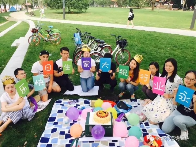2017年6月16日,“永业行6月员工生日会”在东湖绿道举行。来自地产顾问事业部、地矿事业部、投资咨询事业部、环境事业部、恩施分部、服务部门的10余位同事参加了本次生日会。